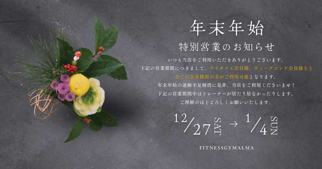 年末年始の運動不足解消に是非、当店をご利用くださいませ!